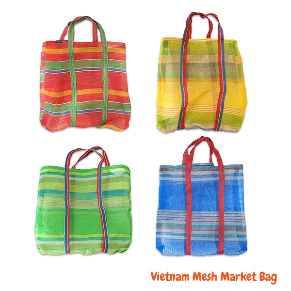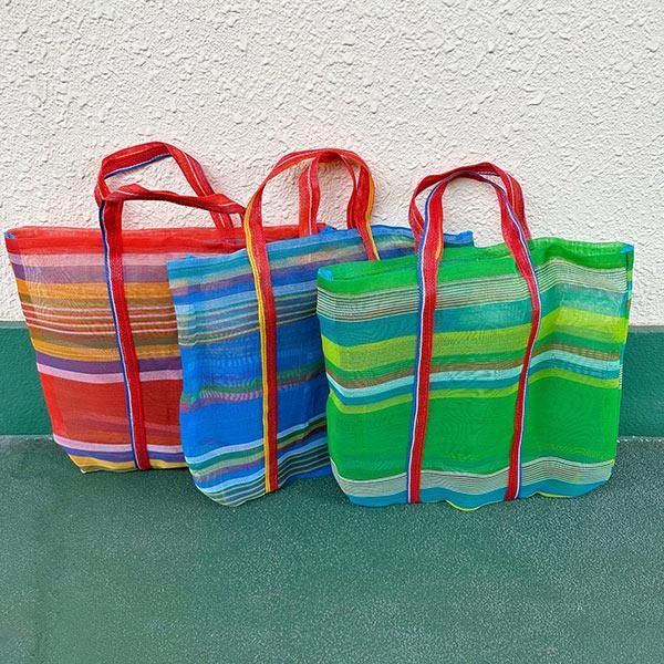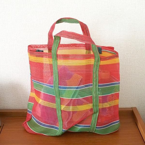 ベトナムのナイロンメッシュバッグです。 持ち手は細いですが、意外とたくさん入って丈夫です。 中から手をあててみました。 外からの透け感はこんな感じです。 4色からお選びいただけます。 ひとつひとつ手作りな為、チェックの色合いや持ち手の色合いは 届いてからのお楽しみ♪ ちょっとした飲み物や小物雑貨を入れて お出かけしたり・・・ スーパーやコンビニの エコバッグとしてもおすすめです。 明るい色味でお買い物も楽しく! サイズ:縦約34cm×横約34cm×持ち手約24-26cm ※ひとつひとつ手作りな為 若干のサイズの誤差や汚れがございます。 現地で直接購入しているため、若干形が 曲がっていたり小さな穴がある場合がございます。 上記ご了承の上でのご購入をお願い致します。 クリックポストご希望の場合は 4つ折りでの発送になります。 素材:ナイロン *ベトナム *多少のサイズの違い、ゆがみ、染色のムラ等など ある場合があります。ご了承下さい。 *パソコン環境によっては、色の印象が変わることも ありますので、ご了承下さいませ。