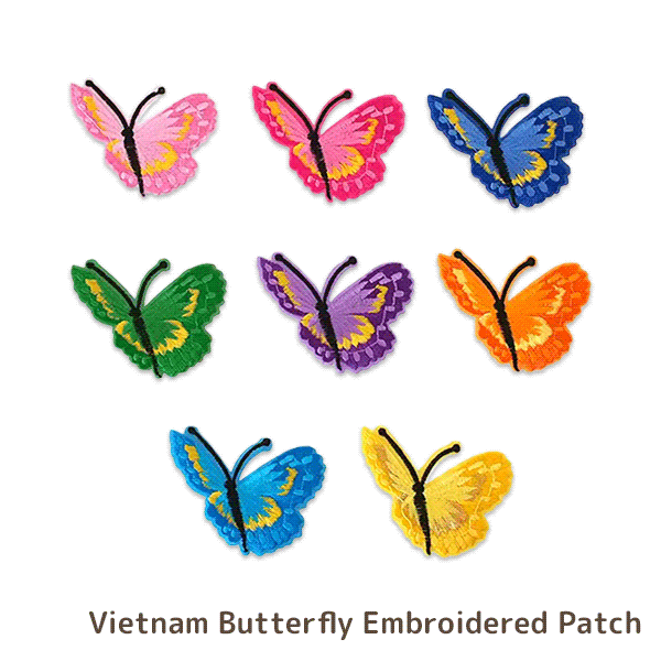 ベトナムの蝶々刺繍ワッペンです。 裏面にはのりがついているので アイロンで装着できます。 糸で縫い付けると更に安心ですね。 8色からお選び頂けます。 バッグや洋服・帽子に付けたり ご自宅にあるワッペンと 組み合わせても素敵ですね。 楽しさ広がるカラフルな ハンドメイドをお楽しみ下さい* サイズ:縦約6.5cm×横約7.5-8cm ※現地で直接購入している為 縫製のむらや糸のとぎれ等が 生じている場合がございます。 *パソコン環境によっては、色の印象が変わることも ありますので、ご了承下さいませ。 *手作りによる製法の為、多少の縮み、色落ちが生じます。 素材特有の織りむら、色むらのある場合もございます。