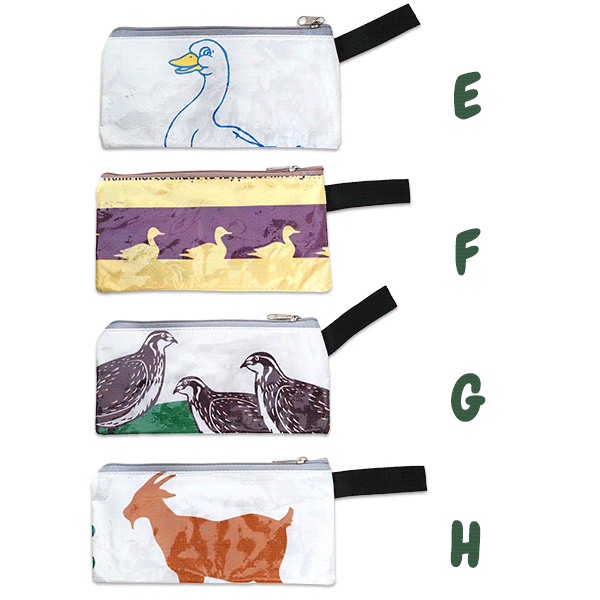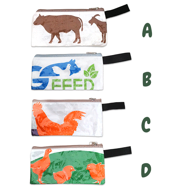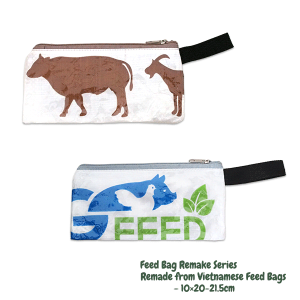 ベトナムの飼料袋をリメイクして作られたポーチです。 同じ絵柄でも表裏全く同じではないのでさりげなく1点ものです。 ニワトリやブタ、ウシなど、動物たちの柄が楽しいシリーズです。 ペンケースやメガネケースとしても使えるスリムタイプ。 8種類からお選びいただけます。 表面は、ビニールでコーティングされています。 水に濡れてもサッと拭き取れて裏地も付いていて安心。 筆記用具を入れたり、領収書やレシートを入れたり ちょっぴりシュールなイラストも一緒にお楽しみください! サイズ:縦約10cm×横約20-21.5cm ※サイズには若干の誤差がございます。 ※ひとつひとつ手作りな為、サイズ裏面は画像と異なります。 *ベトナム *パソコン環境によっては、色の印象が変わることも ありますので、ご了承下さいませ。 *多少のサイズの違い、ゆがみ、染色のムラ等など ある場合があります。ご了承下さい。