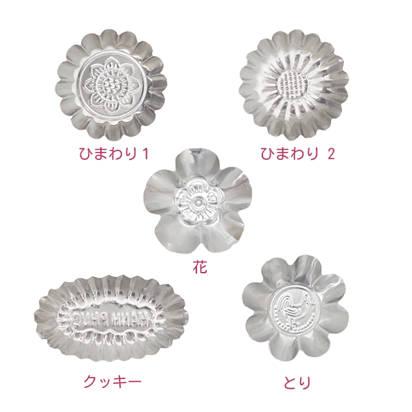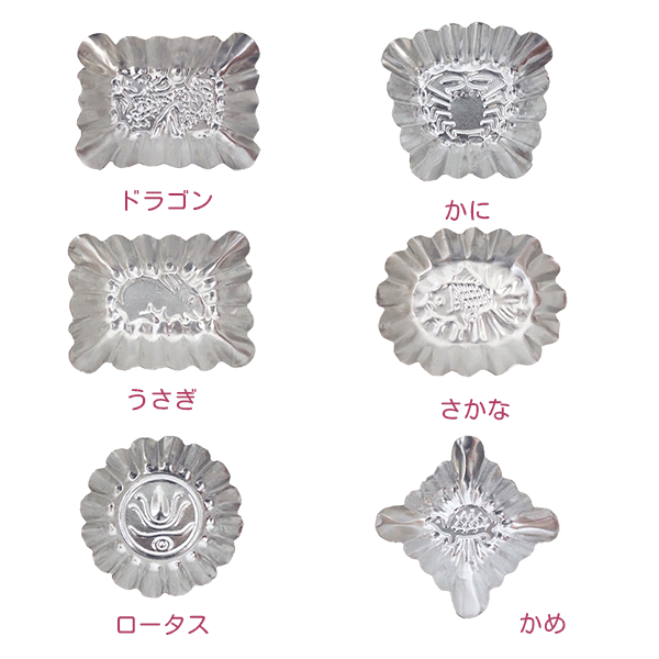 ベトナムのキッチュなアルミの型です。 ベトナムの市場に行くと魚や花型の アルミの型がたくさん売られています。 花や鳥、うさぎ、魚など、どこか懐かしく 温もりのあるモチーフを集めてみました。 13種類からお選びいただけます。 マドレーヌやカラフル色のゼリーなど・・・ 小物入れとしてもおすすめです* サイズ: ひまわり1)直径約6.5cm×高さ約1.5cm ひまわり2)直径約6cm×高さ約1.5cm 花 )縦約6.5cm×横約6.5cm×高さ約2cm クッキー)縦約5cm×横約9.5cm×高さ約1.5cm とり)縦約6cm×横約6cm×高さ約2cm ドラゴン)縦約5cm×横約7cm×高さ約2cm かに)縦約6cm×横約7cm×高さ約2cm うさぎ)縦5.5cm×横7cm×高さ約2cm さかな)縦約5.5cm×横約7.5cm×高さ約2cm ロータス)直径約6.5cm×高さ約2cm かめ)縦約8cm×横約8cm×高さ約2cm ★ミニサイズ★ ミニかに)縦約4cm×横約4.5cm×高さ約1.5cm ミニはな)直径約4cm×高さ約2.5cm ※サイズには若干の誤差がございます。 素材:アルミ *パソコン環境によっては、色の印象が変わることも ありますので、ご了承下さいませ。 *現地で直接購入な為、色ハゲ・キズなどがある場合がございます。 現地の香りとして、ご理解頂ければ幸いです。