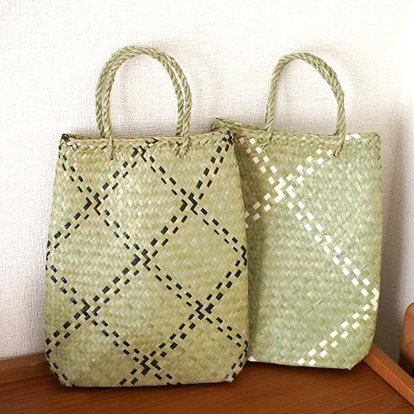 天然素材 水草の手編みトートバッグです。 ひとつひとつ手仕事で仕上げられていて軽くて丈夫。 普段使いから収納かごとしても活躍してくれます。 マチは約6cm程度です。 コンパクトな縦長タイプ間口は約17.5cm程 2種類からお選びいただけます。 素朴で温かみのあるデザインはインテリアにもファッションにも 馴染む万能アイテム。ベトナムの暮らしを感じるエスニック雑貨です。 お出かけのお供に、またお部屋を彩るナチュラルな収納としてもおすすめです。 サイズ:縦約31cm×横約26cm×マチ約6cm 持ち手約26cm ※サイズには若干の誤差がございます。 素材:水草 *ベトナム *多少のサイズの違い、ゆがみ、染色のムラ等など ある場合があります。ご了承下さい。 *パソコン環境によっては、色の印象が変わることも ありますので、ご了承下さいませ。