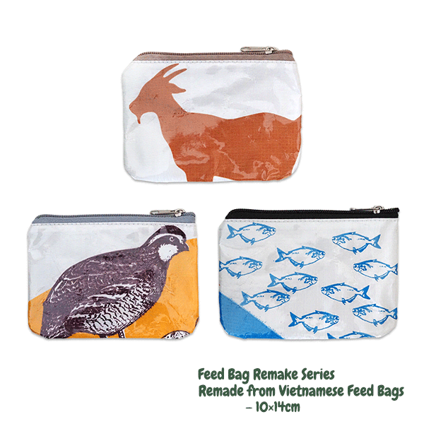 ベトナム 飼料袋 リメイクポーチ〈全3柄〉|動物&魚柄いろいろ(ビニールコーティング/マチなし )