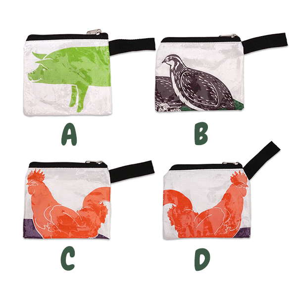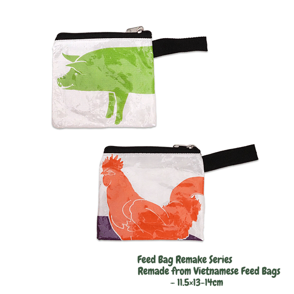 ベトナム 飼料袋 リメイクポーチ〈全4柄〉|ブタ&ニワトリ&ウズラ柄(持ち手付き/ビニールコーティング/マチなし )
