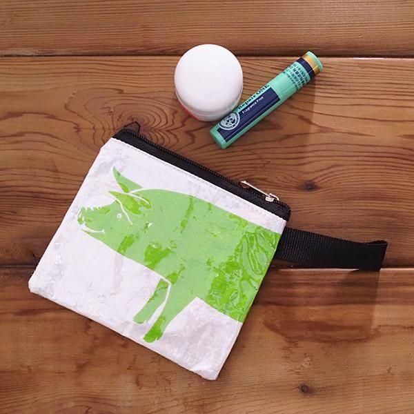 ベトナム 飼料袋 リメイクポーチ ブタ&ニワトリ&ウズラ柄 使用イメージ 笑福Lotus