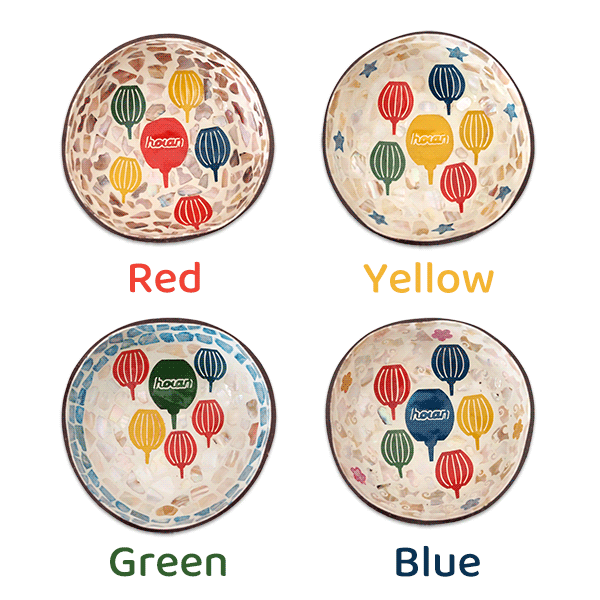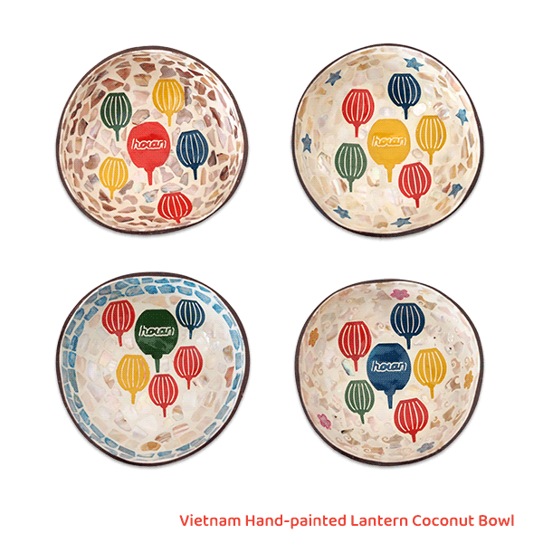 ベトナム ホイアン ランタン柄 手描きココナッツボウル 笑福Lotus