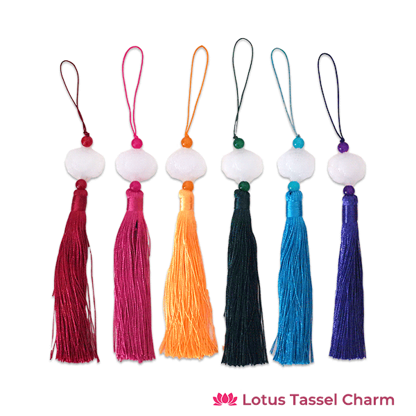 白い蓮とカラフルなタッセルを合わせた、ベトナムの縁起チャームです。 蓮は「清らかさ」や「再生」を象徴する縁起の花といわれています。 風に揺れるカラフルなタッセルがやさしく運気を呼び込んでくれそうです。 6色からお選びいただけます。 お守りや蓮好きな方へのプレゼントにもおすすめです。 ベトナムらしい彩り豊かなチャームです。 サイズ:全長22-23cm ※サイズには若干の誤差がございます。 ※現地で直接購入しているため、タッセルの毛並みや 編み方等には若干の誤差がございます。 *ベトナム *パソコン環境によっては、色の印象が変わることも ありますので、ご了承下さいませ。 *多少のサイズの違い、ゆがみ、染色のムラ等など ある場合があります。ご了承下さい。