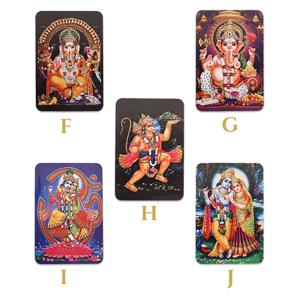 A ドゥルガーB ドゥルガーCサラスヴァティD ラクシュミーE ラクシュミーF ガネーシャG ガネーシャH ハヌマーンI クリシュナ & ラーダーJ クリシュナ & ラーダー