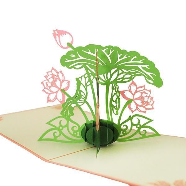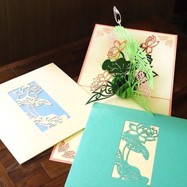 ベトナム 切り絵ポップアップカード 蓮 ロータス 3色 15×15 笑福Lotus