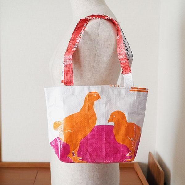 ベトナムの飼料袋をリメイクして 作られたショルダーバッグです。 同じ絵柄でも表裏全く同じではないのでさりげなく1点ものです。 ビニールコーティングなしの軽やかな仕上がりで、肩に掛けても快適。 マチ付きです。 3種類からお選びいただけます。 内ポケットや裏地はない、シンプルな作り。 カラフルでどこかレトロなプリントは 見ているだけで楽しくなるシリーズです。 お買い物バッグや通勤・通学、旅先のサブバッグとしてもおすすめ。 ベトナムらしい遊び心がつまった一点もののバッグを 毎日の相棒にどうぞ。 サイズ:縦約20cm×横約28-29cm×マチ約10cm×持ち手全長約48-49cm ※サイズには若干の誤差がございます。 ※内ポケットは付いていません。 ※リサイクルした袋で作られているため 若干汚れが生じている場合がございます。 *ベトナム ※こちらの商品は、発送時に半分に折った 状態でのお届けとなります。 *パソコン環境によっては、色の印象が変わることも ありますので、ご了承下さいませ。 *多少のサイズの違い、ゆがみ、染色のムラ等など ある場合があります。ご了承下さい。