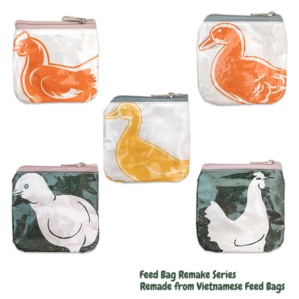 ベトナム 飼料袋 リメイクミニポーチ〈トリ柄 全5柄〉(ビニールコーティング/マチなし )