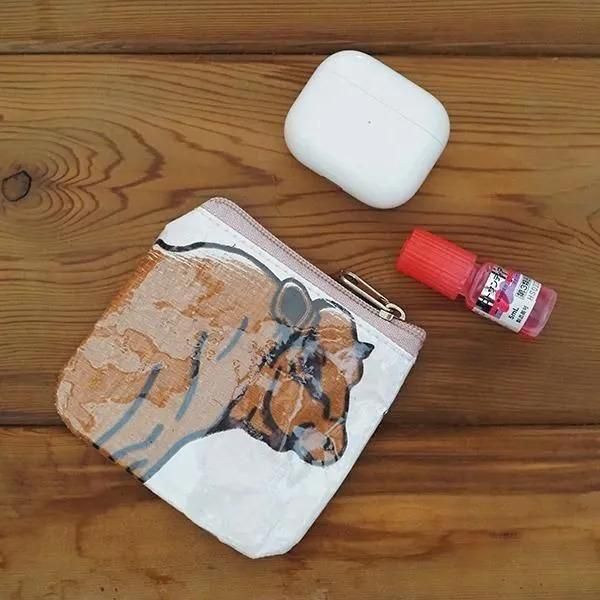 ベトナムの飼料袋をリメイクして作られたミニポーチです。
