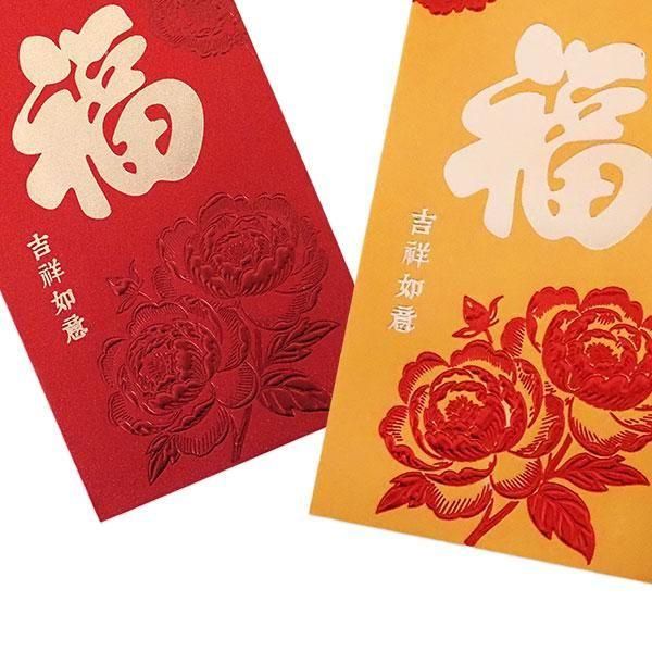 艶のある光沢紙に、大きな「福」の文字と牡丹の花をあしらった ベトナムのお年玉袋です。 牡丹は、富や繁栄、美しさを象徴する縁起の良い花。 赤と金の華やかな配色が、新年のよろこびを一層引き立てます。 2色からお選びいただけます。 通常のお年玉袋よりも素材に厚みと光沢があり 少し特別感のある仕上がり。 新年の贈りものや、大切な方へのお年玉におすすめです。 たくさんの「福」が訪れますように・・・ サイズ:縦約17cm×横約9cm ※サイズには若干の誤差がございます。 ※現地で直接購入している為、 角が若干潰れている場合がございます。 *パソコン環境によっては、色の印象が変わることも ありますので、ご了承下さいませ。 *多少の歪みや、色むらが生じている場合が こざいます。ご了承下さいませ。